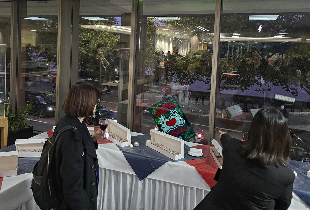 ⬆️ Delegates take photos of the posters.